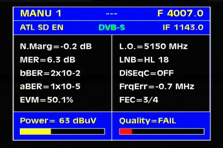 - MERp=10.7 dB _ N.MAR=7.1 dB : If we define the threshold for locking the carrier around the level of MER=2 dB