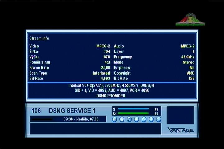 Intelsat 907 at 27.5°W - NE zone footprint : 3 851 L DVB-S2/QPSK feed UNIRE-SNAI Italy