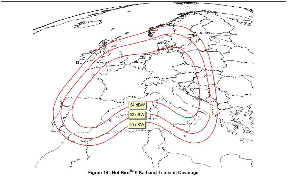 ►►Eutelsat Hotbird 13A-13°E-KA band satellite reception-footprint-analysis : copyright