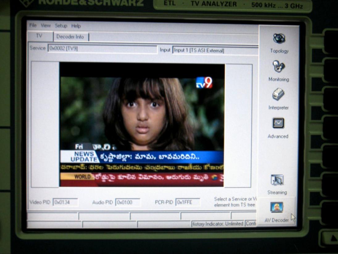 Insat 2E at 83.0°E - Asian footprint : 3 550 V TV9 Telegu / Rohde & Schwarz transport stream data