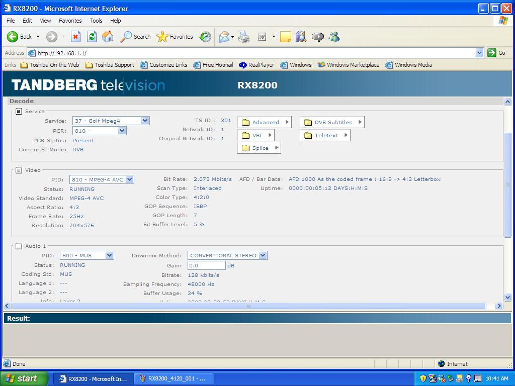 Measat 3A at 91.5°E - Global footprint : Tandberg RX 8200 _ measurement results