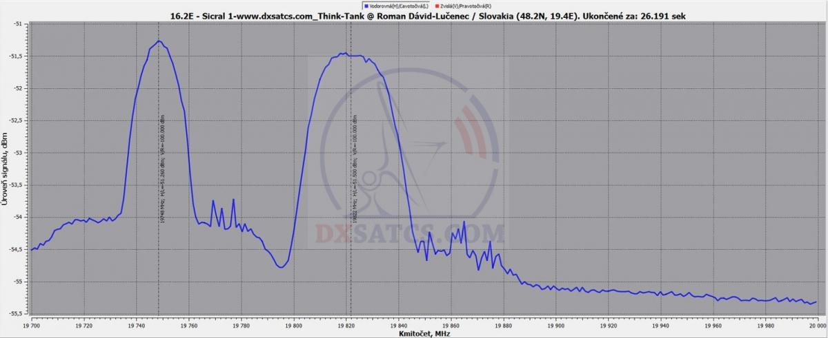 Sicral 1-16.2°e-EHF-KA-band satellite reception video-LHCP vector : spectrum analysis from 19 700 to 20 000 MHz _