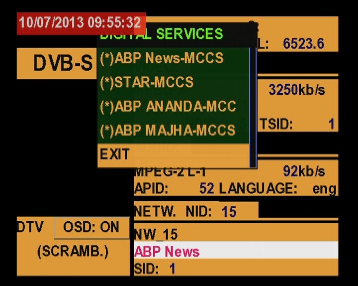 4 180 H @ 969.20 MHz @ SPAN 50 MHz : 83°E Kolkata TV![]()