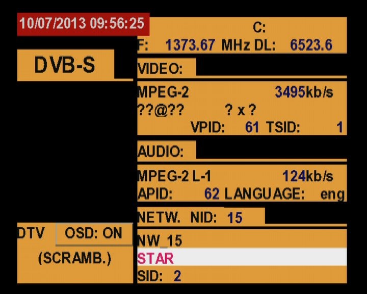 3 776 H @ 1 373.67 MHz @ SPAN 100 MHz : 83°E Star TV![]()