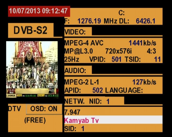 4 087 H @ 1 062.70 MHz @ SPAN 50 MHz : 83°E Live India![]()