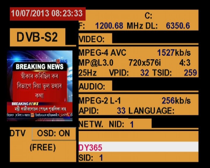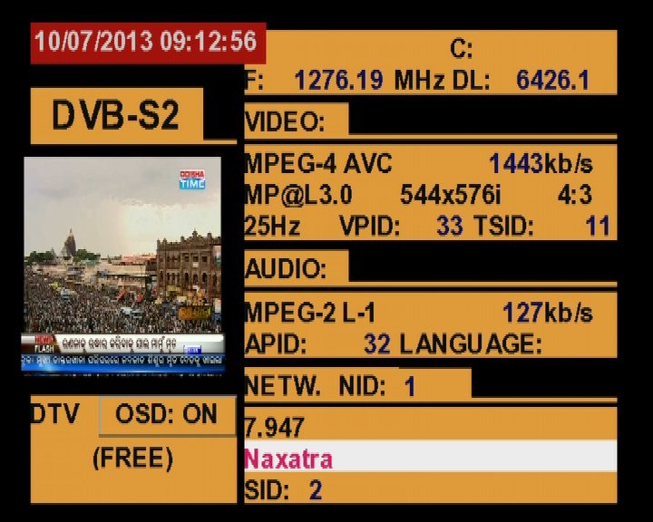 4 115 H @ 1 035.94 MHz @ SPAN 50 MHz : 83°E Manorama news![]()