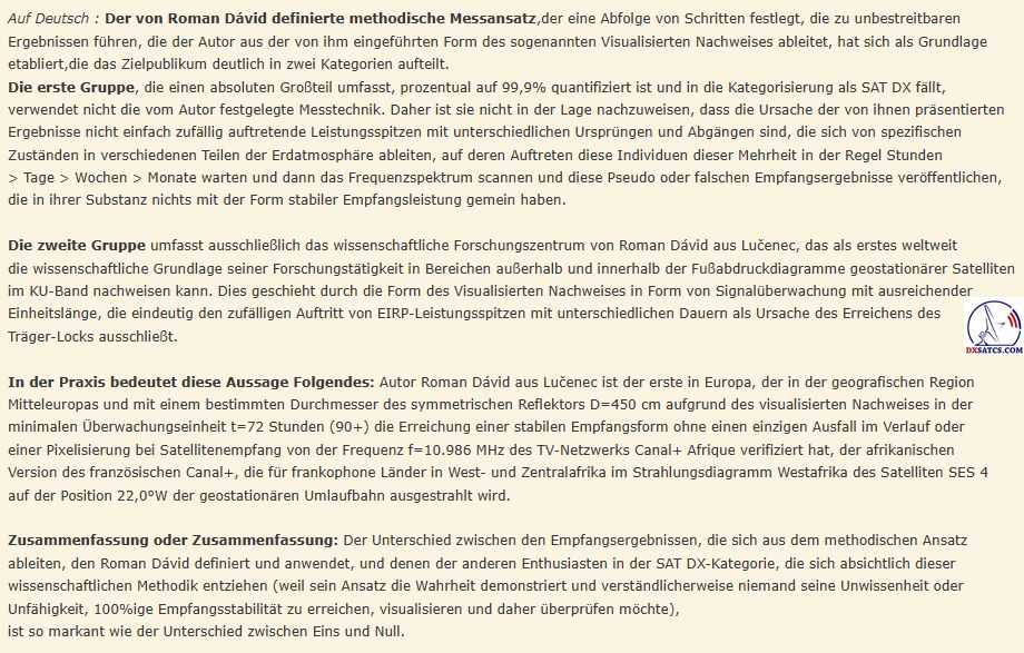 očakávaniam.Antimetodické a zavádzajúce postupy sa dominantne a už desiatky rokov uplatňujú v amatérskej kategorizácii satelitného príjmu