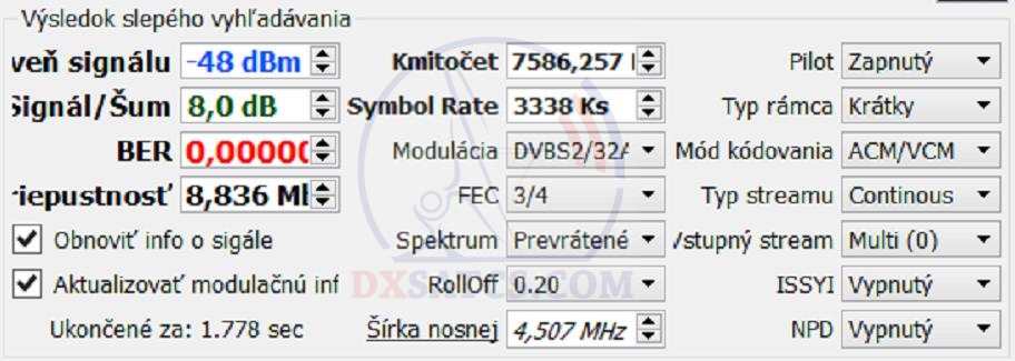 elm. vlnení vo frekvenčnom spektre od 7250 do 7 750 MHz a publikovaniu modulačných parametrov niektorých dátových paketov,